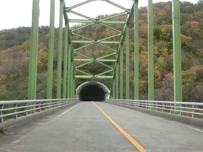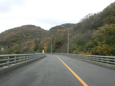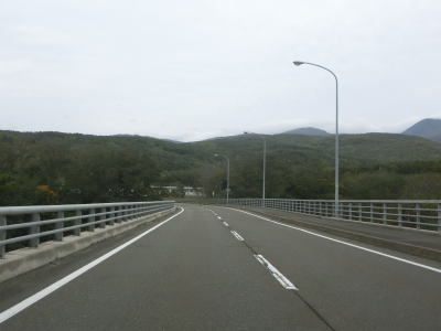 | 日方泊トンネルを出てすぐに濤景橋を渡る。その手前で旧道が分岐しているが、ゲートが閉ざされており進入できない。コンクリートブロック等で完全にふさがれているのではないところを見ると、何らかの業務で通行する事があるのかもしれない。濤景橋を渡り終えてからも複数の橋梁で谷を越える。これら連続する橋梁のおかげでヘアピンカーブが連続していた旧道に比べてだいぶ走りやすくなっているものと思われる。 | ||