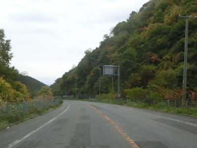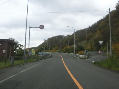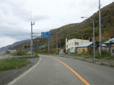 | 雄冬橋を渡って雄冬集落に入り、集落の中で市町境を越えて増毛町に入る。雄冬集落自体大きなものではないが、なぜか増毛町側と石狩市側に別れている。ただの市町の境だけでなく振興局の境でもあり、石狩市の属する石狩振興局から増毛町の属する留萌振興局に入る。 | ||