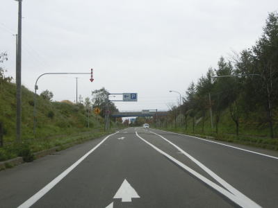 | 留萌市に入ってからも道路状況は特に変化はなく海とJR留萌本線跡に挟まれた狭い平地を走る。道路状況に変化が見られるのは市境から約2.8km、礼受牧場に至る道路との交差点付近である。周囲の風景は変わらないがいきなり中央分離帯が現れて片側2車線道路になる。その後、非常に緩やかな右カーブを曲がって、非常に緩やかな勾配を上っていると留萌本線跡をオーバーパスする。 | ||