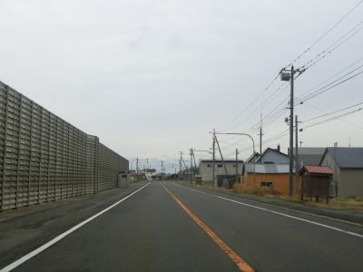 | 69.再び海沿い区間となる | 70.防潮壁(?)の延伸工事が行われていた | 71.延長済みの新しい防潮壁(?) |