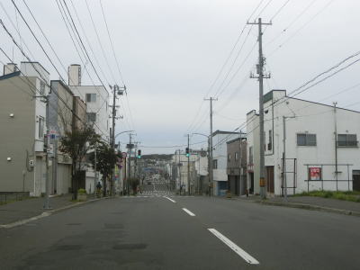 | 増毛町の市街地の西部を走っていると左にカーブして北海道r546交差点を通過する。その後は緩やかな勾配を上り、見晴台駐車場の出入口を通過する。駐車場は国道より高い位置にあり見晴らしも良いようだが、トイレも東屋もないただの駐車場である。 | ||