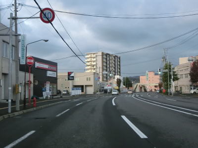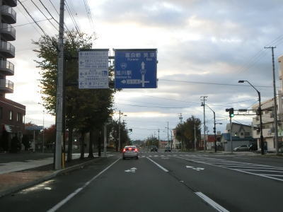 | 北海道r90の緑が丘高架橋をくぐった直後にr90の支線との西御料4条1・西御料5条1交差点を通過する。r90は旭川環状線という路線名であり、その名の通り旭川市の市街地を環状に結んでいる(一部の区間はR12のバイパスに重複している)。 | ||