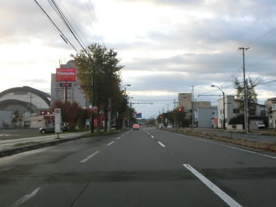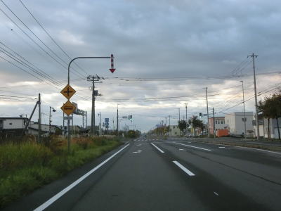 | 15.車線減少の標識は点灯式 | 16.車線減少後も直線道路 | 17.北海道r579西神楽南1条2・西神楽北1条2交差点 |