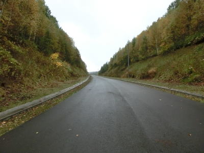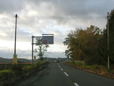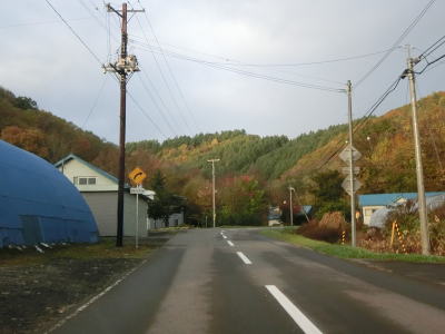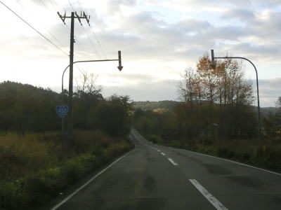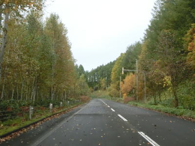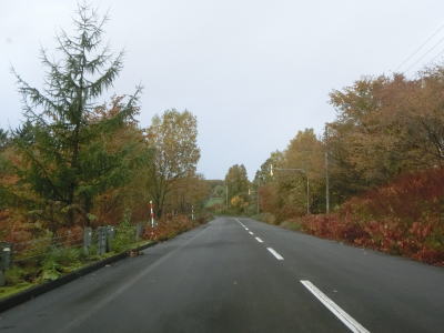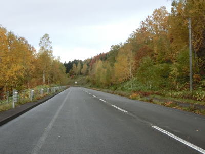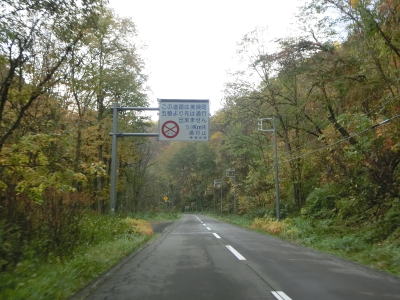 | 色付いた木々の間を走っていると左カーブの先で通行止ゲートに至る。センターラインはゲートの直前にまで描かれており、分断区間にありがちな酷道的な要素は一切感じられない。R237との西神楽2条18・西神楽1条18交差点からの距離は約13.0km、北海道r580交差点からの距離は約5.6kmである。 | ||