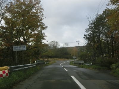 | 少しだけ島牛川の右岸を走った後に五稜坂下橋を渡って左岸に戻る。町道が接続している右カーブを曲がって第4号橋を渡って五稜小学校の入口を通過する。家屋が疎らな集落にある小学校だが、10年以上前に閉校となっている。国道沿いの最後の家屋を通り過ぎて五稜神社の鳥居の真ん前の町道との交差点を道なりに左方向へと進む。 | ||