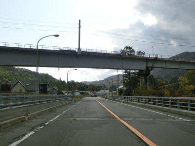 | 付け替え道路との高低差が小さく見える場所もあるが、ダムの嵩上げによる増水には対応できる設計にはなっているのだろう。ダム湖の端を過ぎて幾春別川の流域を走っていると桂秋橋や桂夏橋、桂春橋を次々に渡って行く。最初の桂冬橋をあわせて春夏秋冬が揃う。桂春橋の次は夕映橋と朝映橋、桂清橋を渡る。桂清橋付近が付け替え道路との接続地点である。 | ||