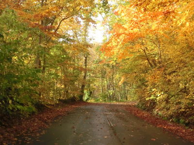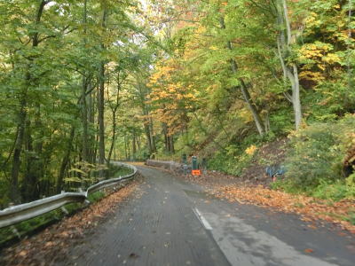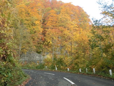 | 121.スノーシェッドとヘアピンカーブの連続地帯 | 122.交通量は少ない | 123.紅葉の最盛期を迎えている模様 |