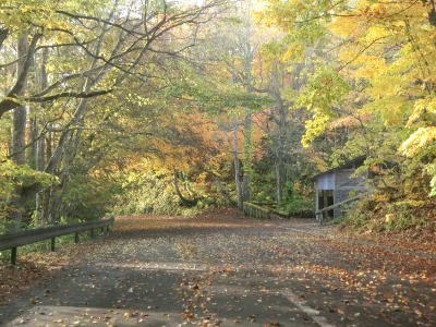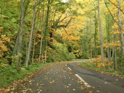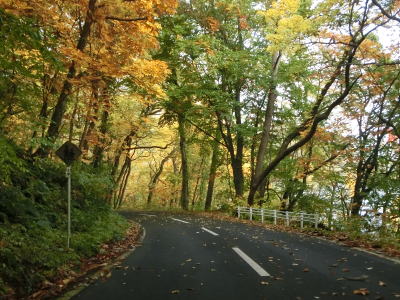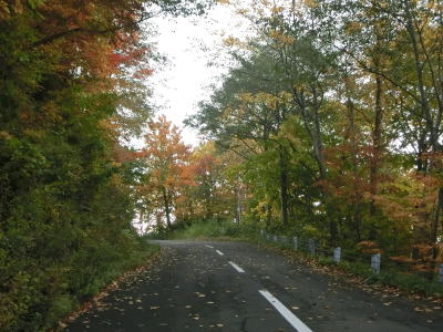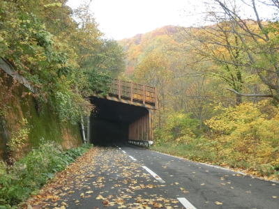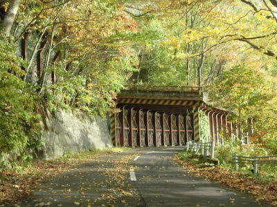 | スノーシェッドをくぐった直後に右のヘアピンカーブを曲がり、さらに左ヘアピンカーブを曲がって内部にヘアピンカーブのあるスノーシェッドをくぐる。その後しばらくカーブのない状態だがすぐに急カーブ連続地帯を通過する。紅葉期にしては交通量は少ないがこれは平日に走行しているためかもしれない。 | ||