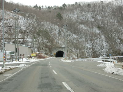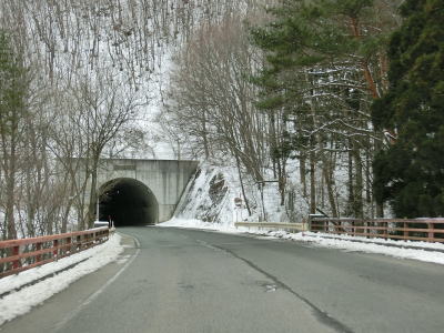 | 女神橋で小本川の右岸に移った後に缺トンネルをくぐり、出た直後に缺橋で左岸に戻る。女神橋の西と荷内川集落で接続している川に沿っている町道が旧道であろう。1.0車線幅の狭路ながら2024年2月の時点でも通行可能なようである。 | ||