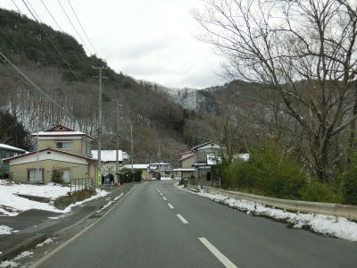 | 小さな農産物直売センターを通り過ぎると歩道がなくなり小本川の谷筋区間に入る。沿線に集落はなく歩道がなくなったものの比較的走りやすい2車線道路が続いており、小本川を何度か渡る。川沿いの町道が旧道であり、一部は廃道のようになっているものの集落がある区間は通行可能である。 | ||