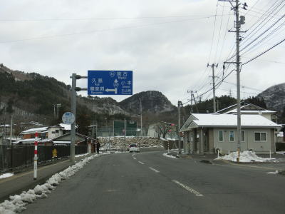 | 新石畑橋を渡った先で旧道と思われる町道との交差点を通過するが、この町道には八戸川内大規模林道が重複している。石畑集落を通り抜け、蛇行する小本川の左岸をカーブの少ない2車線道路で走り抜ける。八戸川内大規模林道が分岐した後に右岸に移る。新袰綿橋の手前に道の駅「いわいずみ」の案内標識が設置されているが、道の駅までの距離は21kmもある。2.1kmではなく21kmである。 | ||