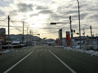 | 奥州市に入ってすぐにS字状にカーブしながら観音堂橋を渡って口内川から離れる。緩やかな勾配を上っていると広瀬小学校の前で下りに転じ、岩手r287交差点を通過する。ごく緩やかなアップダウンのある2車線道路を快走する。 | ||
