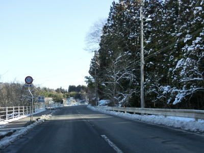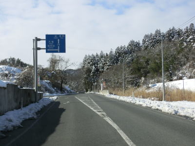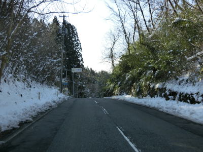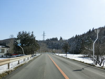 | R284摩王交差点からはカーブが連続する上り勾配の2車線道路を走る。多少きついカーブもあるがセンターライン付きの2車線道路であり走りにくさを感じる程ではない。R284に比べて交通量は少ない。約2.3km走ると名もなき峠を越えて旧藤沢町に入る。「藤沢町」から「一関市藤沢町」に変更された境標識があるため、旧町境を越えた事が分かりやすい。 | ||