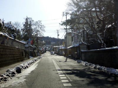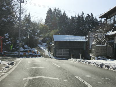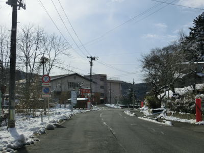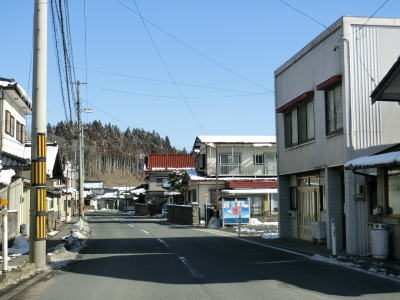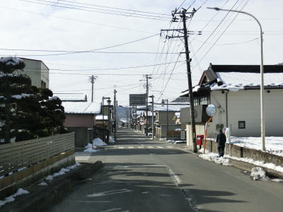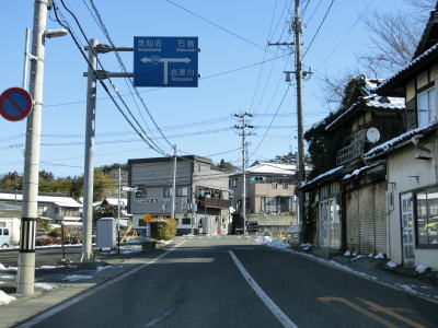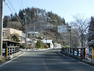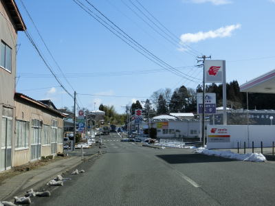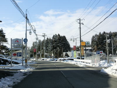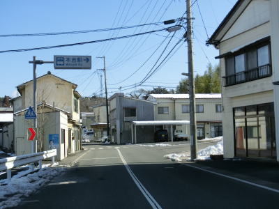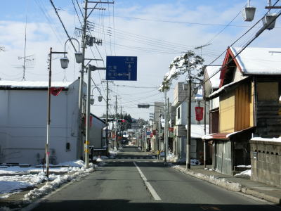 | 2車線快走路を走っていると旧藤沢町の中心部に近付き、沿線に少ないながらも商業施設が確認できる。かつての町の中心部に向かって上り勾配の道路を走っていると左の急カーブを曲がった後に八幡神社の前で右の直角カーブを曲がる。 | ||