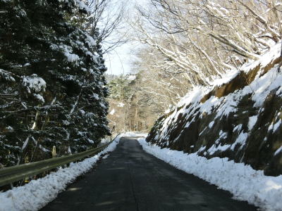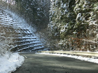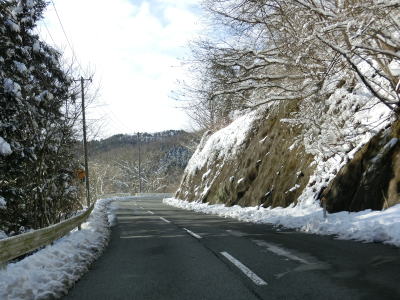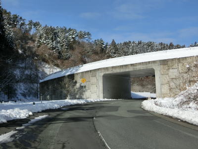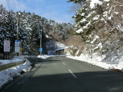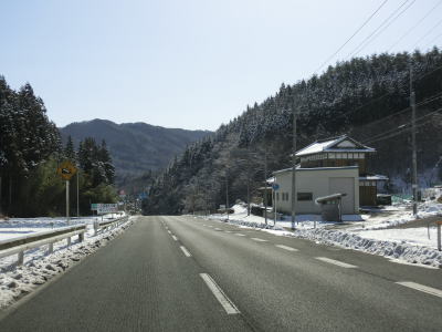 | 稲村集落からは開けた谷筋となり、勾配も収まってほぼ平坦になる。さらにはカーブも緩やかなものばかりで交通量も少ないため非常に走りやすい。交通量の割に多くのチェーン着脱場が設置されているが、全て北向き車線側である。 | ||