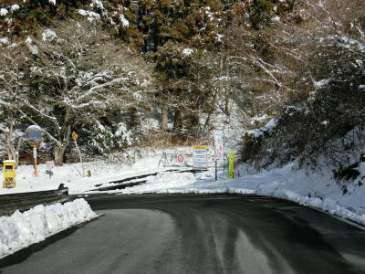 | 161.稲村集落 | 162.多くのチェーン着脱場が設置されている | 163.制限速度が40km/hになる |