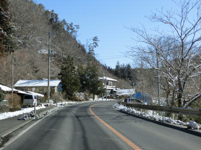 | 中嶋交差点の直後に芽倉橋を渡るが、前後でS字状にカーブしているためか舗装が赤色に塗られている。芽倉橋以東は二股川の右岸を通っているが、進むにつれて谷が狭くなっていく。険しい山奥ではなく周辺には家屋が点在している。 | ||