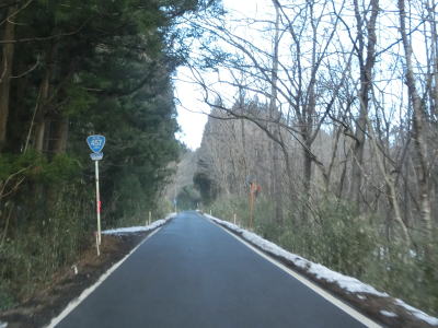 | 川崎町に入って少し進むと積雪量が多くなり路面が雪に覆われた状態になる。勾配はさほど急ではないが急カーブが多く走りやすいとは言い難い。青根温泉に差し掛かると路面の雪がなくなる。路面の雪の量は降雪量の多寡ではなく除雪の頻度が異なるためと思われる。 | ||