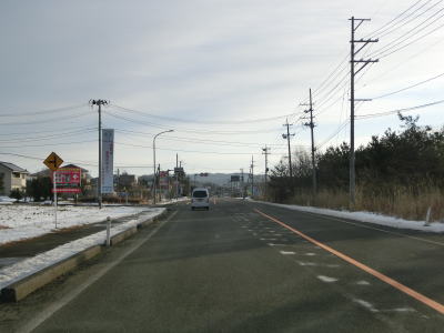 | 一旦停止の十字路のすぐ先で宮城r12との交差点を左折し、その直後は左直角カーブ、右直角カーブを曲がる。r12交差点を除いて道なりに進むだけである。r12交差点の手前を左折できるように道路を造ると直角カーブが解消される。 | ||