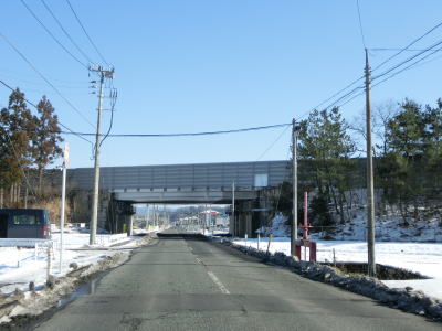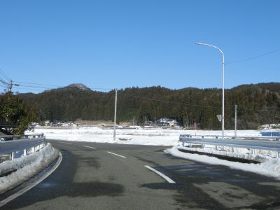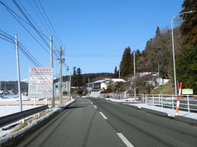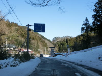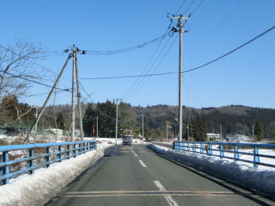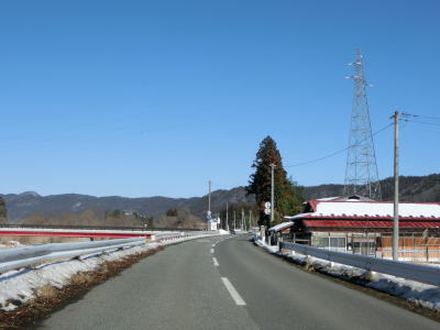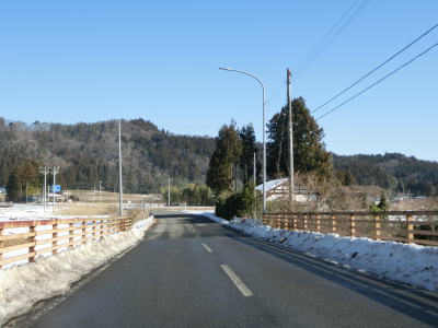 | 老流橋で支流の栃倉川を渡り、市野々川流域を東進する。岩城橋で市野々川を渡ってからは北麓を通るため路面の積雪が多くなるが、除雪はされているので走行には支障なかった。 | ||