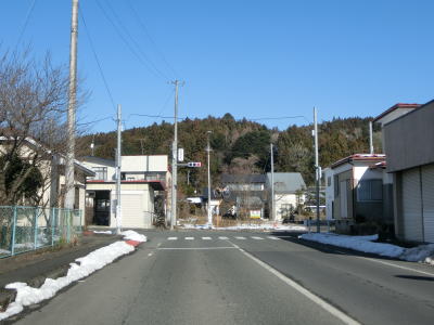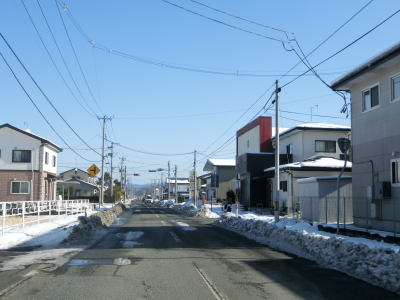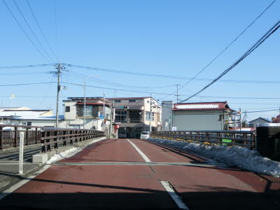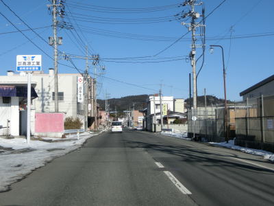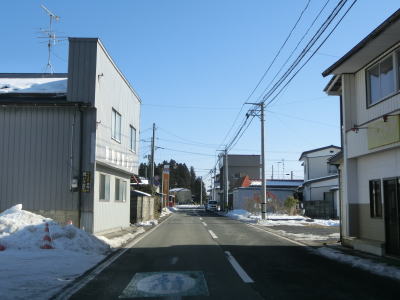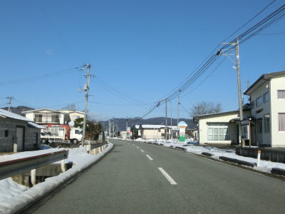 | 旧鶯沢町の中心部に近付くとまず歩道がなくなり、鶯沢郵便局に近付くと車線幅も若干狭くなる。とは言うもののセンターライン付きの2車線道路なので特に走りにくいと言う事はない。新橋で二迫川を渡った後は平坦な直線道路を走る。 | ||