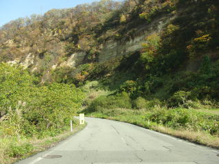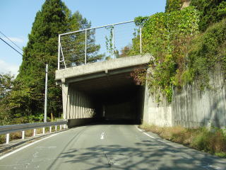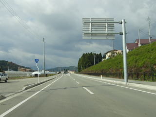 | 豊牧集落に向かう村道との交差点を通過して少し進んだ所で道路工事に伴う片側交互通行規制が敷かれていた。北向き車線の一部が崩落している模様で法面を修復するより線形を変える事で崩落箇所を通らないルートを造っているようだった。その崩落の原因は地震なのか台風なのか。 工事現場を過ぎると2車線快走路が続く。山間部には違いないのだが勾配はほとんどなくカーブも緩やかなものが大半である。信号や交通量がほとんどないためハイペースで走る事ができる。集落内を走らないため人里離れた地だと思ってしまいそうになるが、西を流れる銅山川の対岸に集落がある。 |
