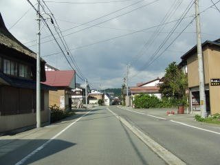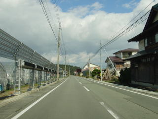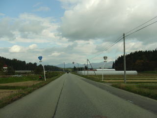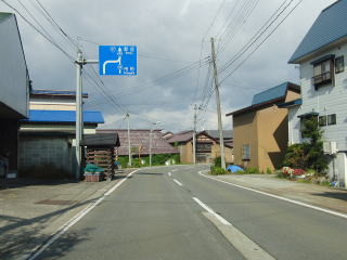 | 快走路を走っていると白須賀集落で左にカーブした先で右にほぼ直角にカーブして、その先で山形r30との交差点に突き当たる。突き当たると言っても道なりに走れば自然と左方向の国道に誘導される。白須賀集落の中心部は消雪水用のパイプがセンターラインの代わりをしている。 | ||