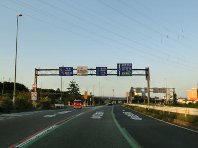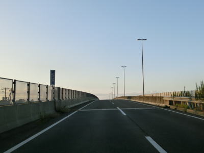 | 紫竹山ICのR7・R8(R17重複)からの側道が合流してすぐに鳥屋野潟に架かるとやの橋を渡る。橋の南詰からは亀田バイパスに入るが、このバイパス区間は歩行者と自転車は本線を通行できない。遮音壁に挟まれた片側2車線のバイパスを走っていると市道に接続しているランプを通過する。 | ||