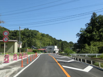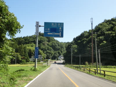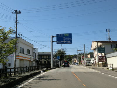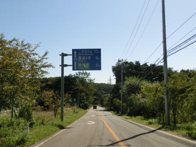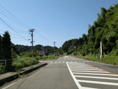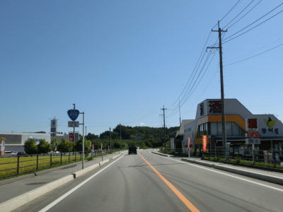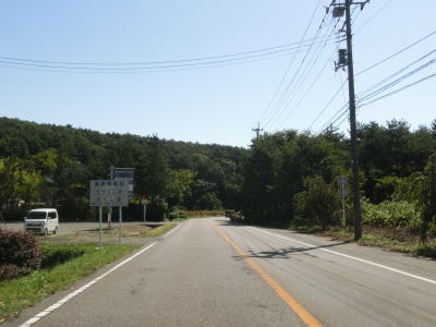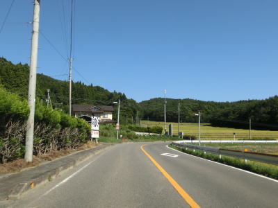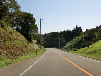 | 家屋と水田が混在する長閑な風景の中を2車線道路で走り抜ける。急なカーブも存在しているが、信号機付きの交差点はほとんどないのでハイペースで走る事ができる。緩やかな下り勾配の左カーブを曲がりながら福島r40との交差点を通過する。このr40はバイパスであり、旧岩代町の中心部を通らずに三春・本宮に行く事ができる。 | ||