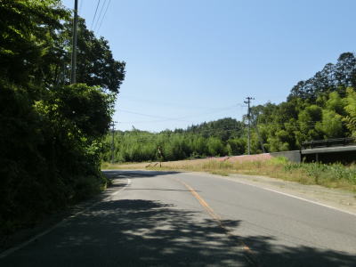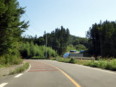 | 広域農道との交差点を過ぎてからは沿線の家屋がほとんどない状態になるが、田畑は存在しているので人里離れた場所ではない。移川の右岸を走っているが、忠実に川に沿っている訳ではなく線形が改良されている区間もあるので概ね走りやすい。緩やかな左カーブを曲がっていると前方に橋台が見えるが、これは建設中のバイパスのものである。バイパスが造られている区間には急カーブが1ヶ所あるので線形の改良を主目的としたバイパスだろう。 | ||