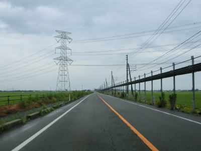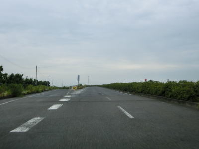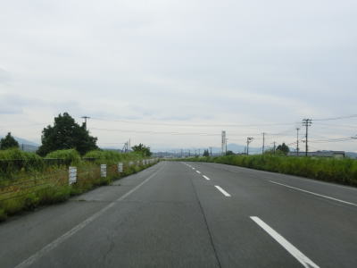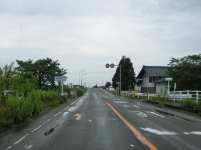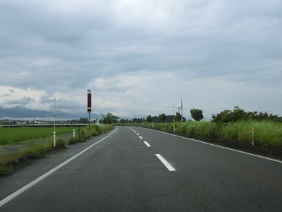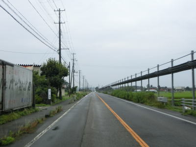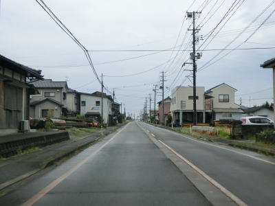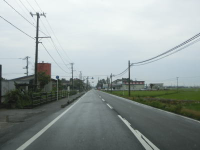 | 非常に緩やかな右カーブを曲がりながら新潟r312乙次交差点を通過する。その後しばらくは沿線に家屋のある状態が続くが、少し走ると防雪柵が現れ、その後周りは水田だけになる。水田の間を直線道路で走っていると新潟r264交差点を通過する。 | ||