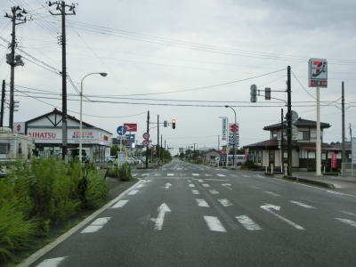 | 22.長い直線道路を走る | 23.旧道との交差点を道なりに右へ進む | 24.阿賀野市の中心部の北を左にカーブ |