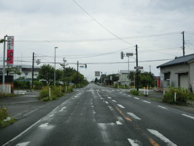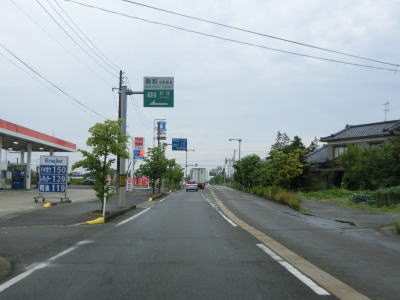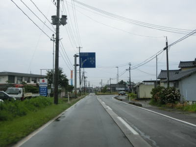| 山倉交差点以降は平坦かつ直線基調の2車線道路が続いている。阿賀野市の中心部の手前で旧道の市道が交差している右カーブを曲がる。真西の方角に向かって走っていると大きく左にカーブして進行方角を南に変える。 | ||