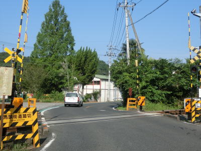 | 建物が密集している中の狭路を走っていると茨城r160との交差点を道なりに左方向へと進む。R461の那珂川町方面からr160へはは鋭角な左折になってしまうが特に左折は禁止されていないようである。r160交差点の直後にJR水郡線の馬頭街道踏切を通過する。センターラインがないのはこの踏切までである。 | ||