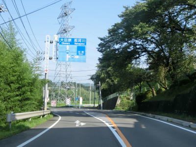 | 盛谷川に架かる大黒橋からはセンターラインが復活して2車線道路になるが、同じく盛谷川に架かる北原橋を渡ると2.0車線幅道路に戻ってしまう。その後センターライン付きの2車線道路となって平坦かつ直線的な状態を走る。 | ||