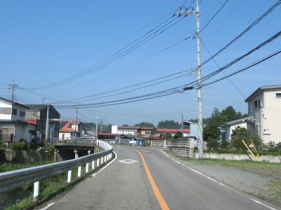 | 旧黒羽町の中心部の北東で栃木r27前田交差点に突き当たり、左折して大田原市街・黒羽方面に進む。前田交差点からは沿線の建物が多くなり、程なくして市道が交差している右カーブを曲がって下高橋を渡る。下高橋は上下線で別々の橋であり、2車線の橋を架け替えるのではなく追加で1車線の橋を架けたのだろう。 | ||