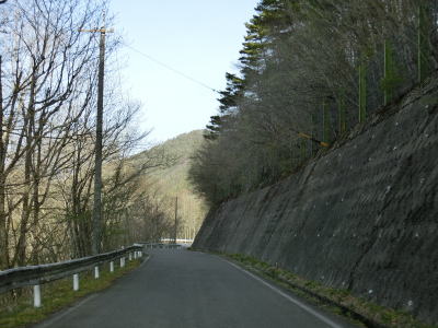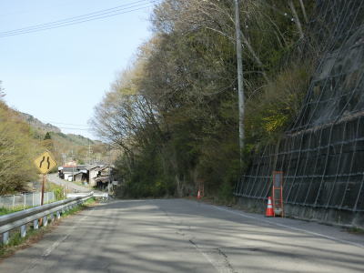 | 茨口橋からは抜井川の右岸を走るが、僅かながらセンターライン付きの2車線区間もある。おそらく災害復旧工事の際に拡幅されたものと思われる。右にカーブしながら下った先で石堂橋を渡って左岸に移る。 | ||
