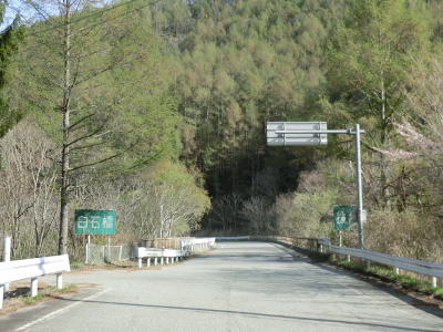 | 山裾を走った後に長野r108余地入口交差点を通過して余地川橋を渡る。r108は下仁田佐久穂線という路線名ながら県境の前後が点線区間のため群馬県へ通り抜ける事はできない。 交通量の少ない2車線道路を快走していると長野r2畑ヶ中交差点を通過する。r2とは高低差があるため半ループとなっており、国道はr2の海瀬2号橋の下をくぐり、その先で一の淵橋を渡る。 |