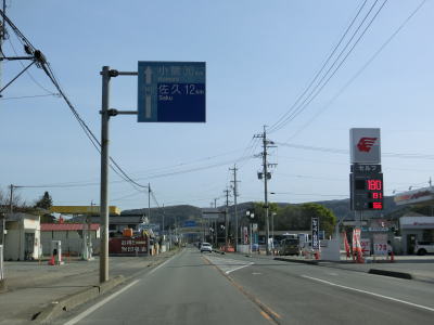 | 平坦でカーブのほとんどない走りやすい片側2車線道路を快走する。100番台国道との重複区間ながら交通量はさほど多くない。旧臼田町の中心部の北西で長野r150美里南交差点を通過し、さらに進むと市道との洞源湖入口交差点を通過する。 | ||
