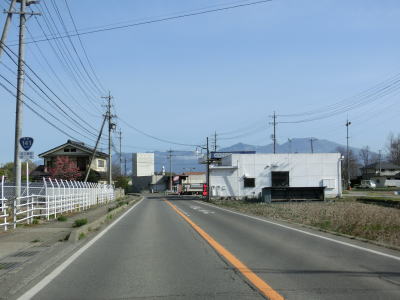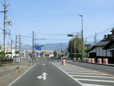 | 千曲川左岸の高台を少し走ると下り勾配となり、同時に道路状況が良くなる。良くなると言っても車線は対面2車線のままで、歩道とゼブラゾーンのおかげで多少広く感じられる程度である。勾配を下り切る手前で長野r121城山交差点を通過する。 | ||