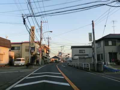 | 成田スカイアクセスの高架を過ぎて少し進むとセンターラインがなくなり1.5〜1.8車線幅とやや狭くなる。狭くなるだけならまだしも右左折の多い400番代後半の割に交通量が結構多いため下手な山岳狭路よりも厄介と言えば厄介である。江川橋を渡った先で左急カーブを曲がってやや急な勾配を上る。センターラインが描かれた区間もあるが道幅に余裕はなく狭いと感じる。 | ||