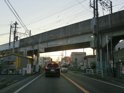 | 4.松戸市高塚新田 | 5.日枝神社を避けるようにカーブ | 6.大町駅下を通過 |