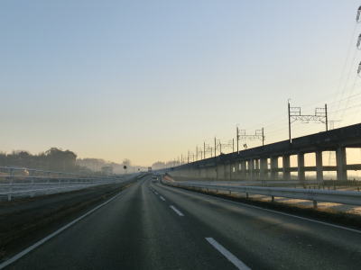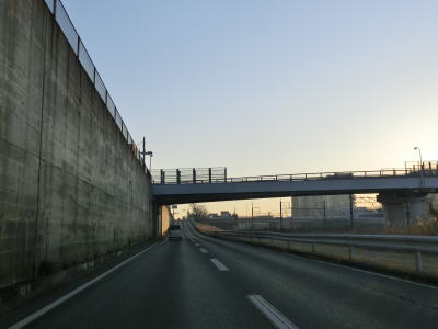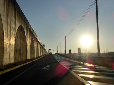 | 印旛沼南端に架かる甚兵衛橋を渡ると成田市に入り、同じく橋を渡ってきた成田スカイアクセスの高架をくぐる。これまで幾度のなく交差、並走してきた成田スカイアクセスだが、これが最東端の交差ポイントである。北千葉道路はこの成田スカイアクセスと並走する形で開通するはずである。 | ||