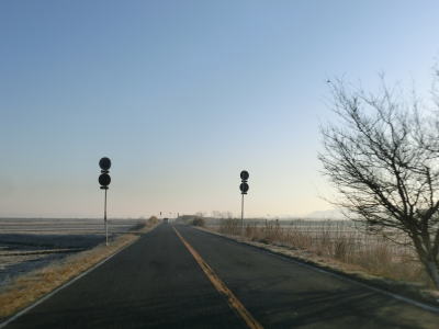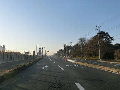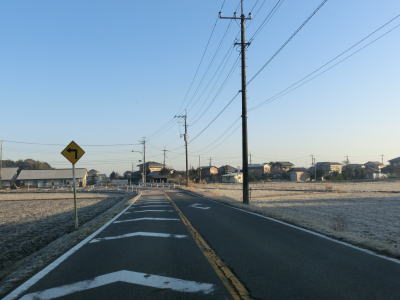 | 右にカーブした先で千葉r12境田交差点を右折する。交差点からも平坦かつ直線的な走りやすい2車線道路が続いている。左手には印旛沼があるが500m弱離れているうえに高低差がないため直接水面を見る事はできない。 | ||