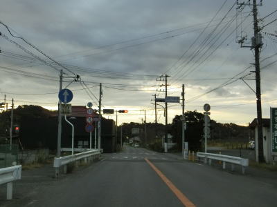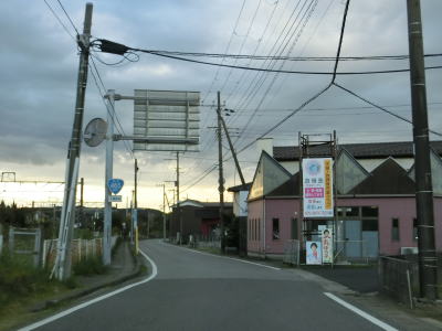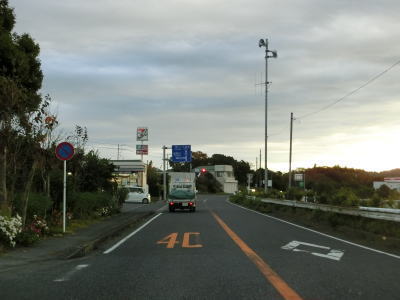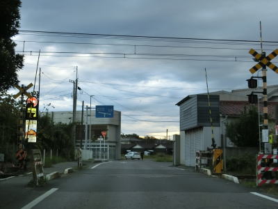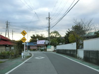 | 大貫駅前を通り過ぎて少し走ると左カーブを曲がり、直後にJR内房線の千種街道踏切を渡って市道とのT字路に突き当たり、右折して佐貫方面に進む。左折の市道に富津市役所が案内されているが、内房線の西を通るR465と似たような道路状況で走りやすいとは言えない。 | ||