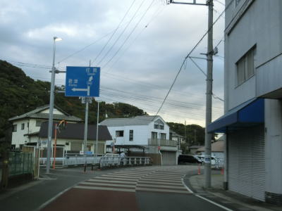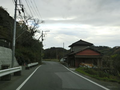 | 家屋が建ち並ぶ中を1.5〜1.8車線幅の狭路で通り抜けていると大貫漁港入口交差点に突き当たる。案内標識が設置されていないが、左折が国道である。大貫漁港入口交差点からも狭路が続いているが、これまでとは異なり緩やかな上り勾配が始まる。沿線の建物が密集している点も同じだが、個人の商店が散見される。 | ||