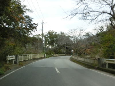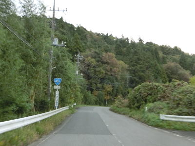 | 君津市に入ってからもセンターライン付きの2車線道路が続いており、緩やかな勾配を下って行く。道路両側をゴルフ場に挟まれており、それらを繋ぐ跨道橋の下をくぐる。ゴルフ場から離れるとセンターラインがなくなるが道幅は2.0車線幅程度あるので極端に狭い訳ではない。センターラインが復活した後に最初の集落に差し掛かり、以降は家屋が点在する中を走る。 | ||