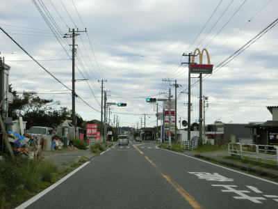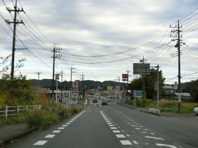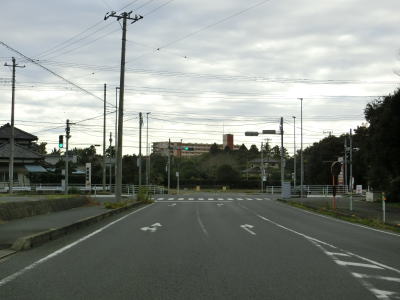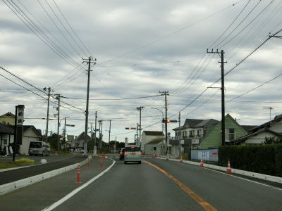 | 東浪見跨線橋からは一段高い場所を走っているものの海岸線とは若干離れているため海は見えない。緩やかに下って一宮町の中心部に入ると沿線の家屋の密度が高くなる。上総一ノ宮駅や一宮町役場の出入口に当たる千葉r228交差点を通過し、次いでr228玉前神社前交差点、千葉r148交差点を通過する。r148交差点は一方通行の出口のため左折してr148に進入する事はできない。 | ||