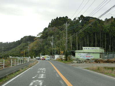 | 谷筋を出て平坦な直線道路を走っていると左カーブを曲がりながら西大原駅の前を通過し、500m弱先で旧道との交差点を通過する。左側に設置された小さい案内標識に大原駅方面の旧道におにぎりが表記されていないが、バイパスにも表記されていない。 | ||