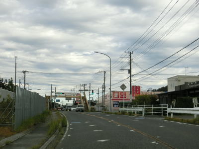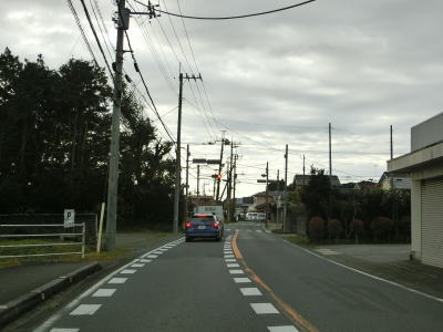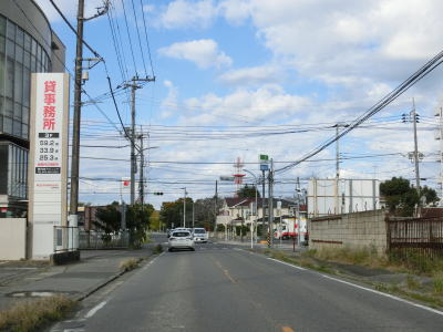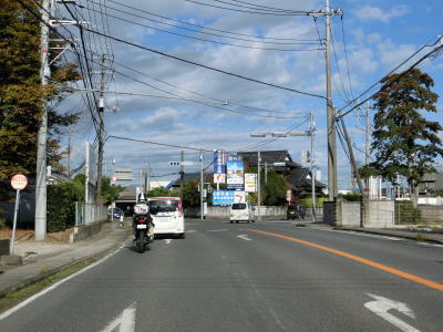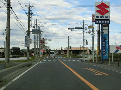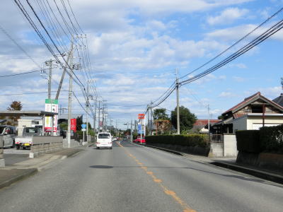 | 沿線の建物が増えてきた所で千葉r83七井土交差点を通過する。鵠沼堰交差点で交差した千葉r293は茂原環状線という路線名であり、この七井土交差点で分岐してr83に重複してからすぐに単独分岐して西の方角に向かっている。 七井土交差点から程なくして茂原市に入り、引き続きほぼ平坦な2車線道路を走る。中心部からは少し離れているが沿線には商業施設が点在しており、交通量もそれなりにある。 |